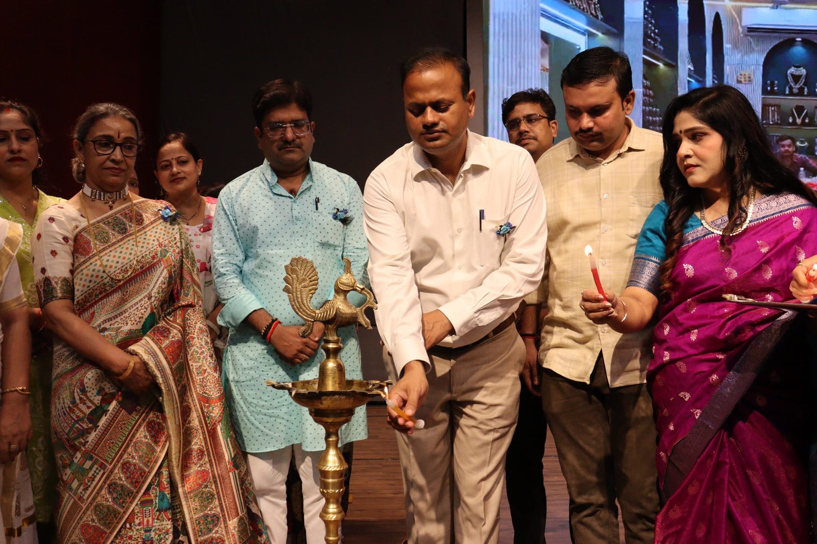 आजमगढ़ 03 जुलाई– जिलाधिकारी रविंद्र कुमार ने कल शाम हरिऔध कला केंद्र आजमगढ़ में भारतीय वेशभूषा एवं परिधानों पर आयोजित ब्यूटी कॉन्टेस्ट के आयोजन का शुभारंभ दीप प्रज्वलित कर किया। जिलाधिकारी ने कहा कि आज लोगों ने अच्छे वस्त्रों/परिधानों को पहनना आधुनिकता का प्रतीक/पहचान मान है। उन्होंने कहा कि जब भी हम भारतीय संस्कृति के वेशभूषा के परिधान पर आधारित इस प्रकार का ब्यूटी कॉन्टेस्ट देखते हैं तो हमें अपनी संस्कृति याद आती है। उन्होंने कहा कि अभी जो राजस्थानी परिधानों का कैट वॉक जब राजस्थानी गानों के बीच किया गया, तो सभी को लगा होगा कि हम राजस्थान/कोटा में हैं।