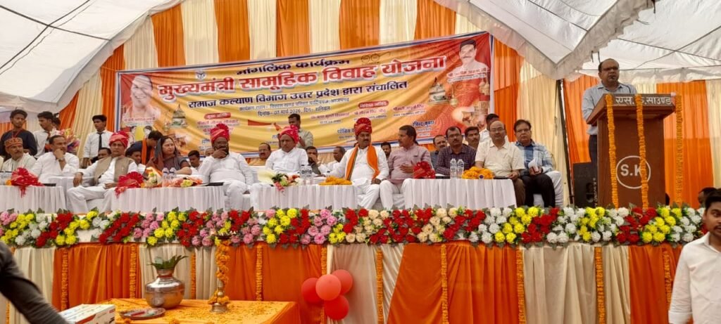 पूर्व सांसद श्रीमती नीलम सोनकर ने अपने संबोधन में कहा कि अब बेटियों का जन्म समाज के लिए गर्व का विषय है। सरकार जन्म से लेकर शिक्षा और विवाह तक बेटियों की जिम्मेदारी उठा रही है। विशिष्ट अतिथि के रूप में पूर्व मंत्री श्री कृष्ण मुरारी विश्वकर्मा और ब्लॉक प्रमुख प्रतिनिधि सौरभ सिंह ‘बीनू’ ने भी जोड़ों को शुभकामनाएं दीं।